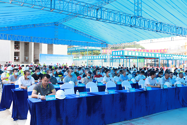 東莞市住房和城鄉建設局質量安全管理科科長及四級調研員郭志川,虎門鎮住房和城鄉建設局局長陳紹祺,灣區保利東莞公司執行總經理洪波偉,中建五局東莞分公司黨委書記、總經理王慎,東莞市建筑業協會秘書長謝芳及建筑業相關單位及媒體記者共計400余人出席現場觀摩。